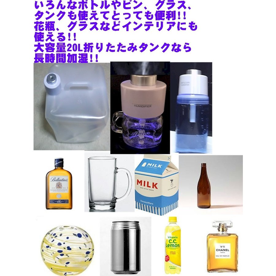 切っても使えます 店長のおすすめ 不思議なタンクレスのペットボトル、グラス、、ビン、大容量タンクなど何でも使えるマルチなアロマ加湿器新登場!! たった10秒で設置が可能です。