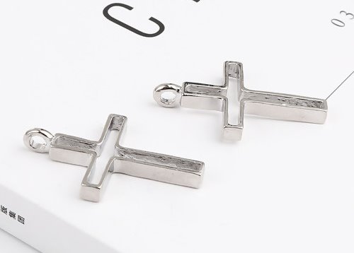 ●取寄品●フレーム枠パーツ 10個パック 十字架デザイン メタルレジン枠セッティング金具 全長38mm×23mm