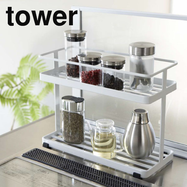 キッチン収納 おしゃれ キッチンラック 調味料ラック スリム コンロ奥ラック コンロ奥隙間ラック コンロサイドラック 2段 北欧 キッチン雑貨 収納ケース スチール yamazaki インテリア雑貨 白 ホワイト 黒 ブラック 6777 6778( 山崎実業 キッチンスタンド タワー tower )