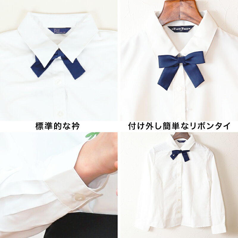 ◆スクール女子長袖ブラウスの紹介リボンタイがきちんとした印象に。