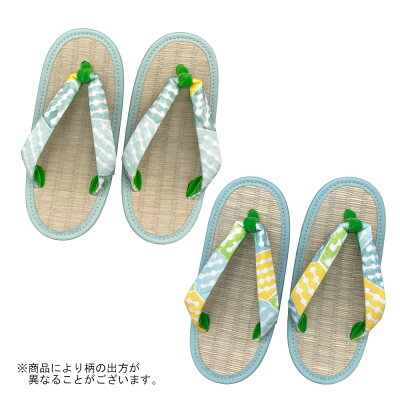 【素材】 鼻緒表面:綿 鼻緒裏面:(基布)レーヨン、(フロッキー)ナイロン 鼻緒芯(紐):ポリプロピレン、ナイロン、ポリエステル 中底(上部):天然い草 底材:ゴム底 パイピング部:PVC 【生産国】日本製 ■注意事項 ※水洗いできません。
